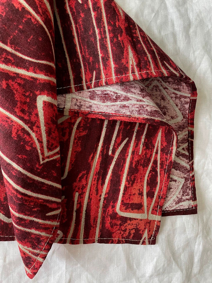 Deep-wine Line-work Print Cotton Linen Multi Purpose Large Bandanas Headband Hair Scarf Protective Coverage for Men Women