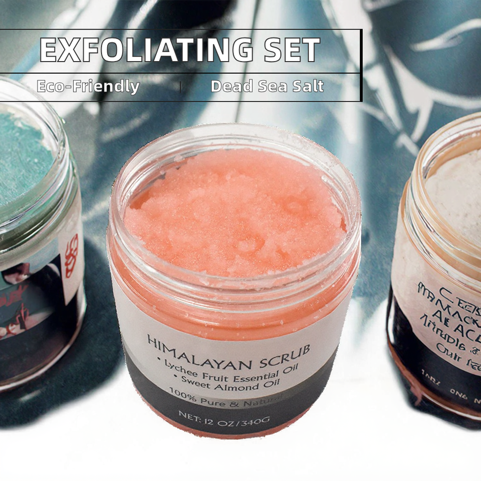 Deeply Exfoliating Face Body Scrub Set Sugar Coffee Charcoal Coconut Infused Bath Salts Himalayan Dead Sea Salt