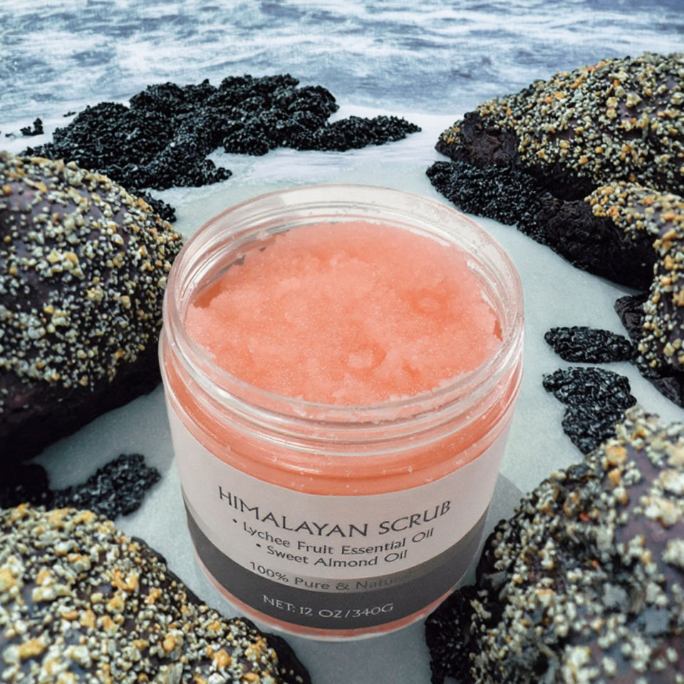 Himalayan Bath Salt Tower with Exfoliating Lavender or Chamomile Flowers Rose-Scented for Body Relaxation-Pad Printed