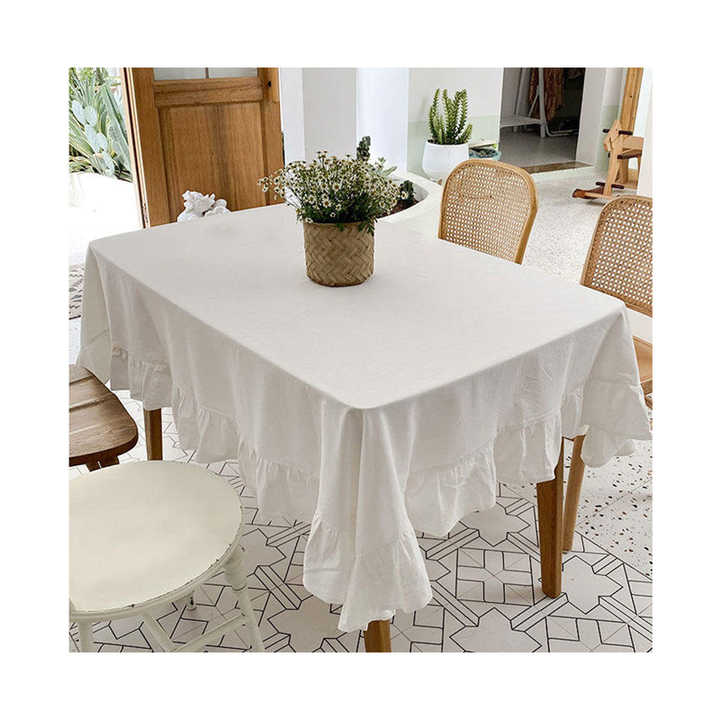 Delicate 100% Polyester White Tablecloth Woven Waterproof Disposable Oilproof Customized Size Color for Tea Parties Gatherings