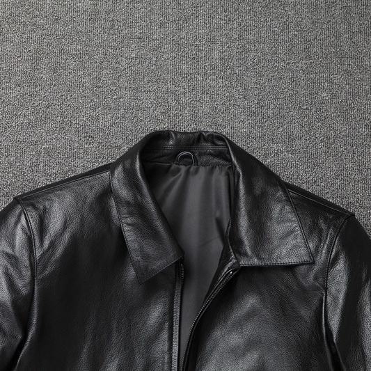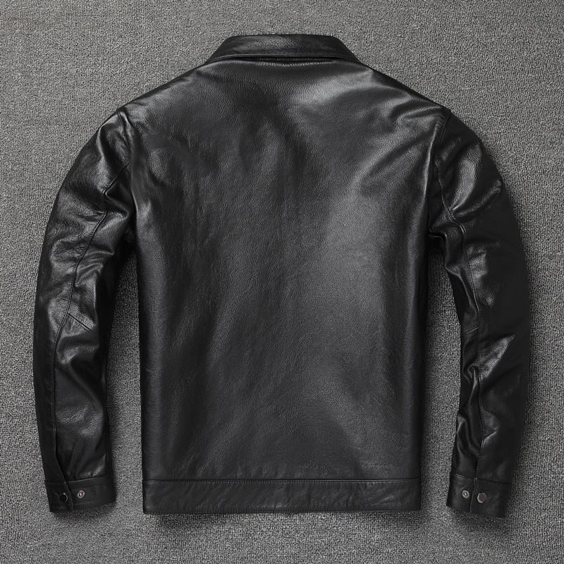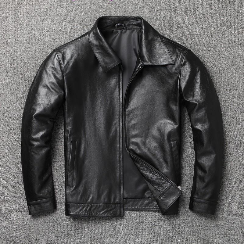 Delicate Calfskin Genuine Leather Men's Jacket - Short-Style, Slim-Fit, Smart Lapel, Plus-Size Padded Biker jacket for men