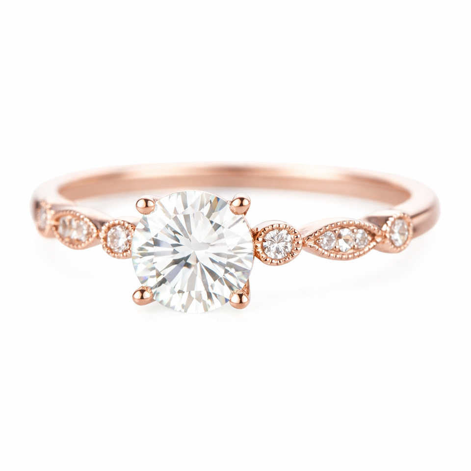 Product name:14K Gold Round Cut Milgrain Wedding Band Engagement Ring