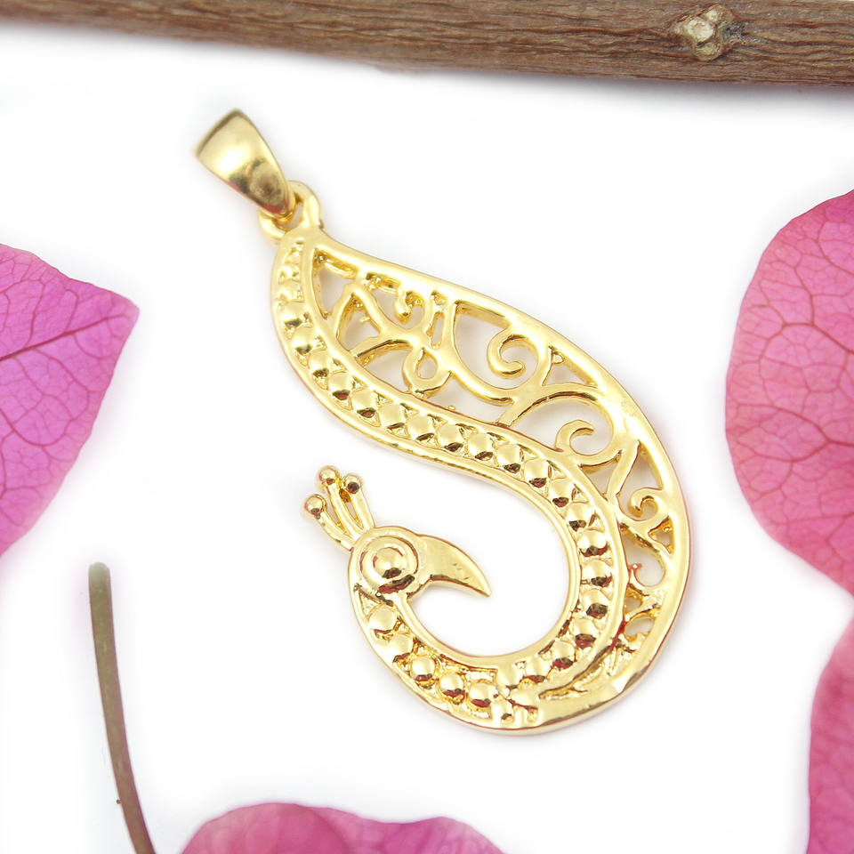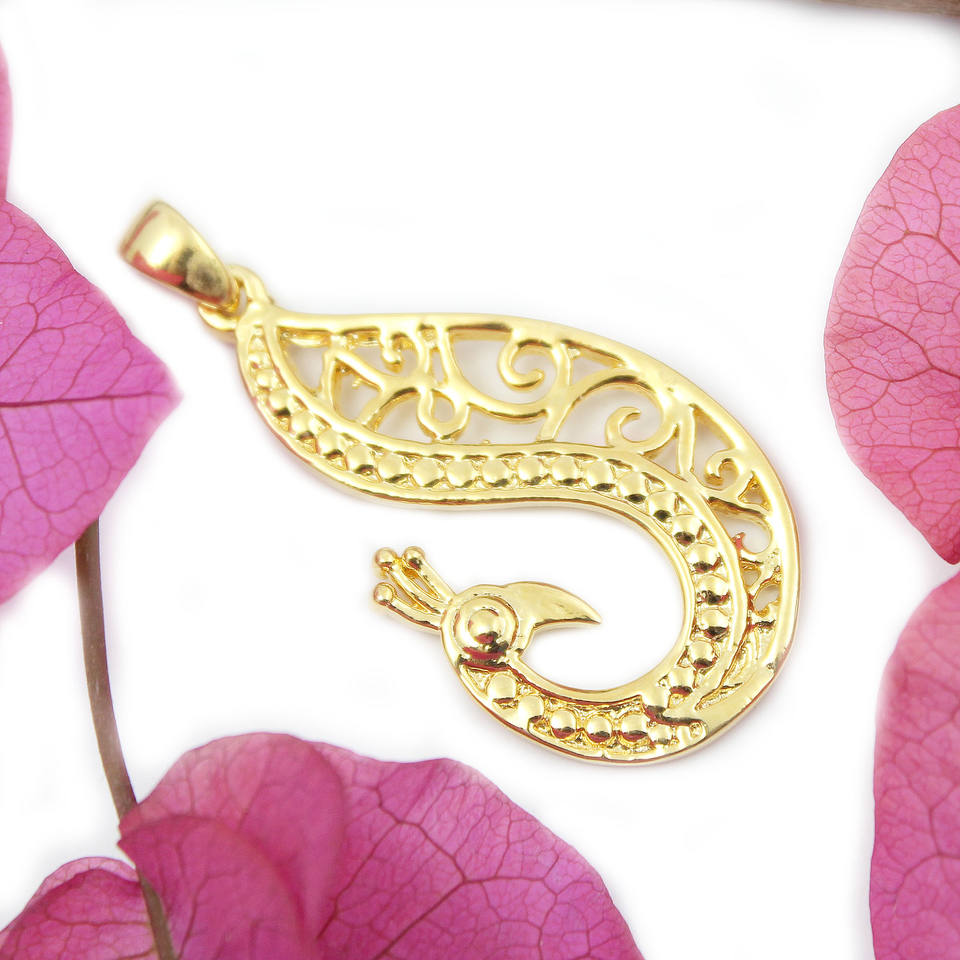 Delicate Design Gold Plated Brass Natural Peacock Pendant Brass Dainty Gold for Women Girls Wholesale Bulk Jewellery For India