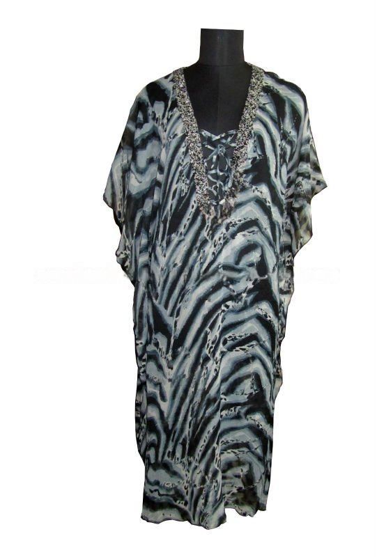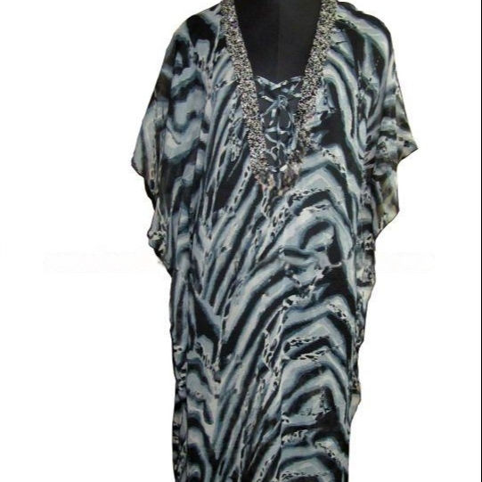 Delicate Heavy Embroidery Round Neck with Tassel Tied up Side Slits Women Kaftan Long Dress Straight Loose Fit Beach Dress