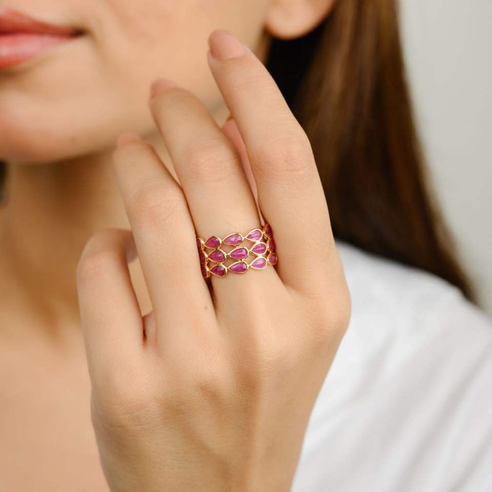 Delicate High Quality Fashion Design Handmade 100% Natural Ruby Pear Cut Statement Ring 18k Solid Yellow Gold Jewelry Top Sale