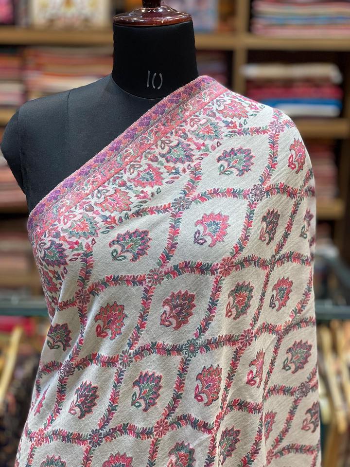 Delicate Pink Solid Cashmere Wool Kashmiri Embroidered Shawl for Winter Wear Wedding Gifting and Traditional Dressing