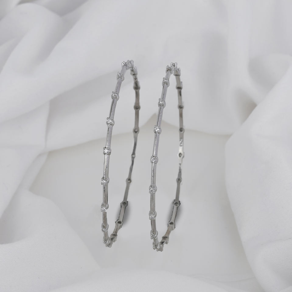 Delicate Slim Silver Bangles Classic Fine Jewelry Sets with Sparkling CZ for Everyday Wear or Gifting