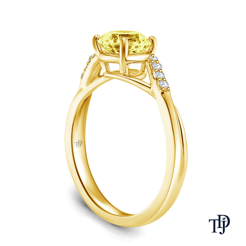 14K Gold Delicate Tapered Pave Yellow Sapphire Engagement Ring