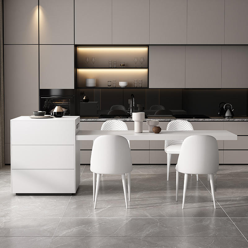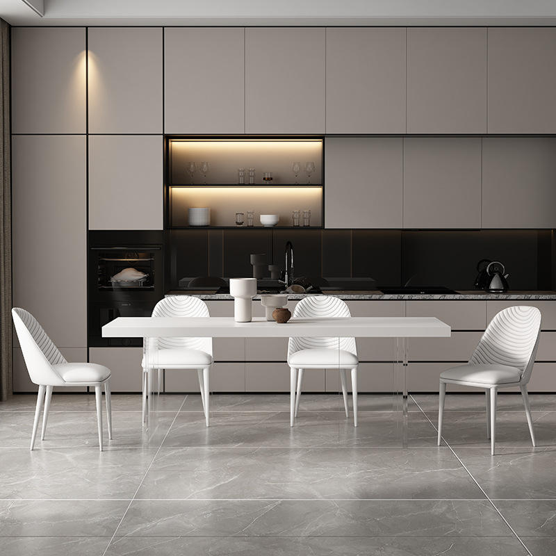 Delifeng Rectangular Acrylic Floating Dining Table Pure White 5cm Rock Slab Design Minimalist Island Stable Structure Dining