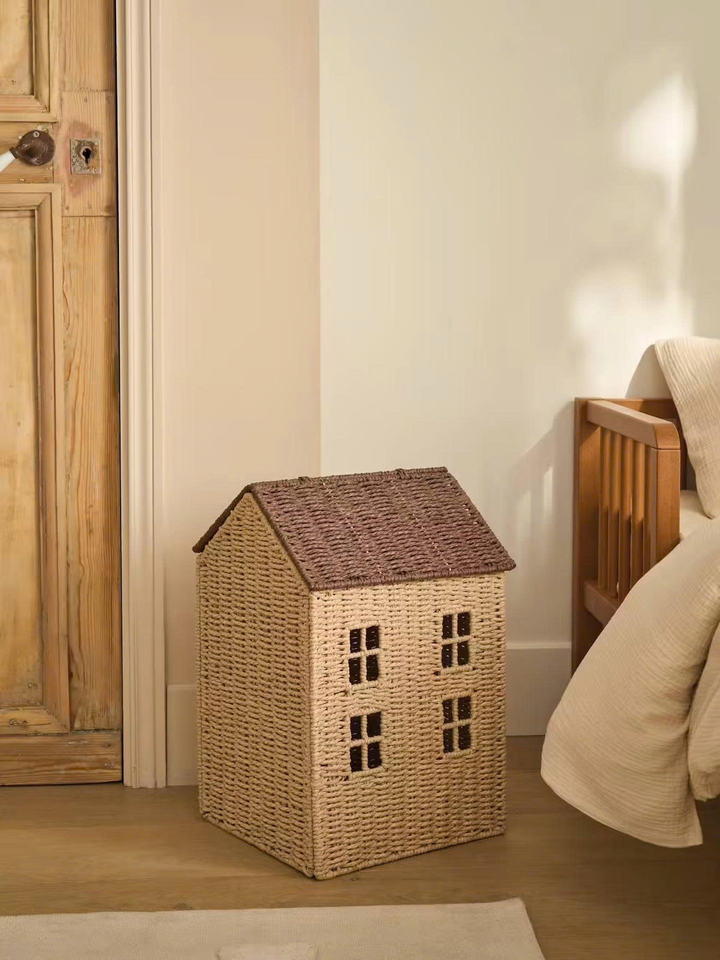 Delightful Paper Woven House Shape Storage Basket Decorative Organizer Toy Bin For Kids Room And Play Area Factory Direct Sale