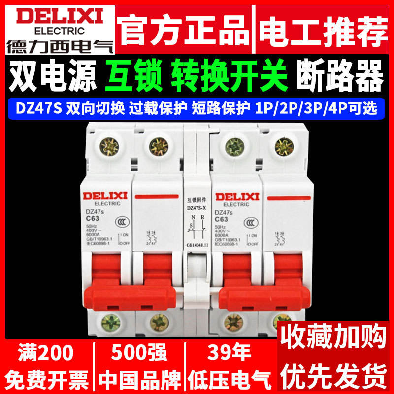 Delixi 220V Dual Power Supply Interlocking Transfer Circuit Breaker Bidirectional Manual ATS Switch Controller Automatic Air