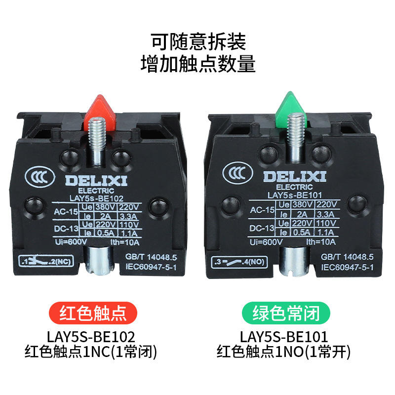 Delixi Accessory BE102-Push Button Switch Auxiliary Contact One Normally Open One Normally Closed BE101 Contact Module Relays