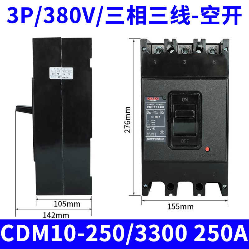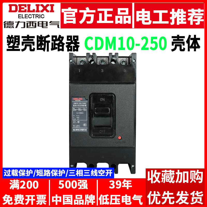 Delixi CDM10-250/3300 Three-Phase 200A/250A Circuit Breaker 3P Air Switch for Electronic Equipment 380V Plastic Material
