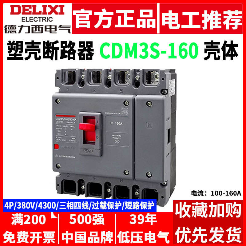 Delixi CDM3S-160S/4300 160A/140A Three-Phase Four-Wire 4P Air Switch Circuit Breakers Product