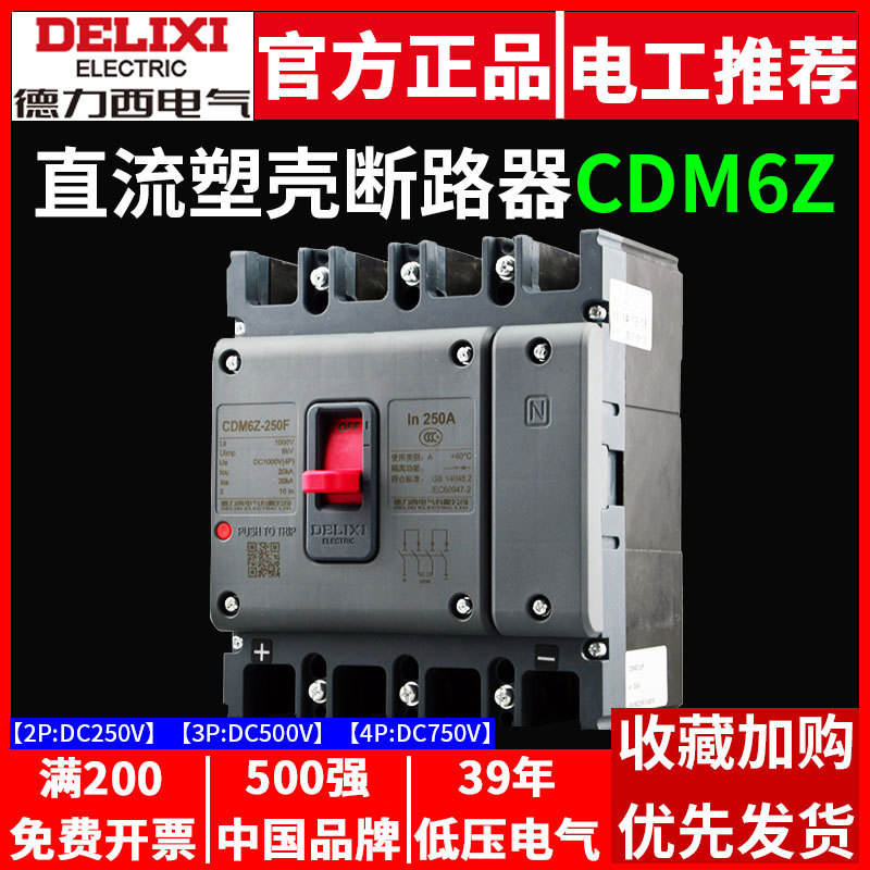 Delixi CDM6Z Moulded Case Circuit Breaker DC Air Switch for Photovoltaic 500V 125A/200A/250A