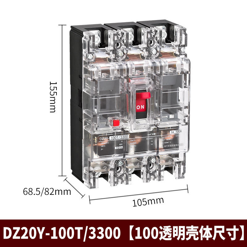 Delixi DZ20Y-100T/3300 63A/80A/100A Three-P 3-P Air Switch Transparent Molded Case Circuit Breaker