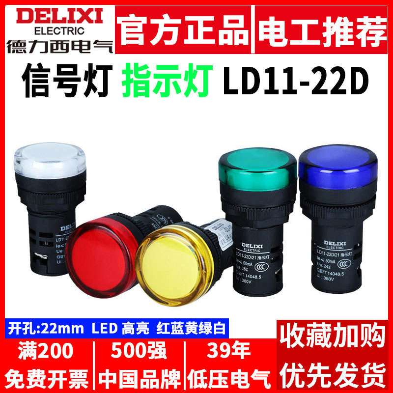 Delixi High Brightness LED Indicator Light LD11-22D Signal Light in Red Yellow Blue Green 220V/380V Plastic Material AD16-22MS