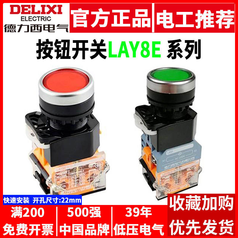 Delixi LA38 Self-Reset Self-Locking Start/Stop Push Button Switch Quick Installation Green Red Momentary Operation Custom Length