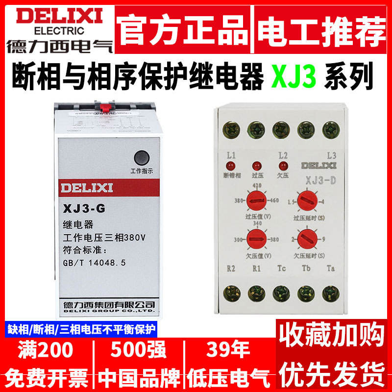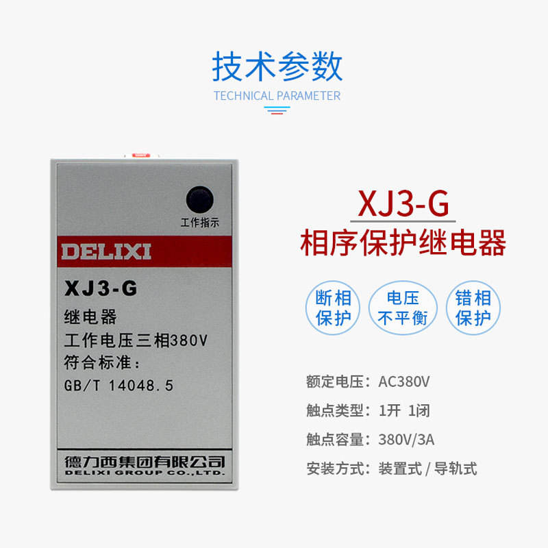 Delixi XJ3-2-G Three-Phase Motor Protection Relay 380VD Over/Under Voltage Phase Loss/Disconnection Sequence Protection System