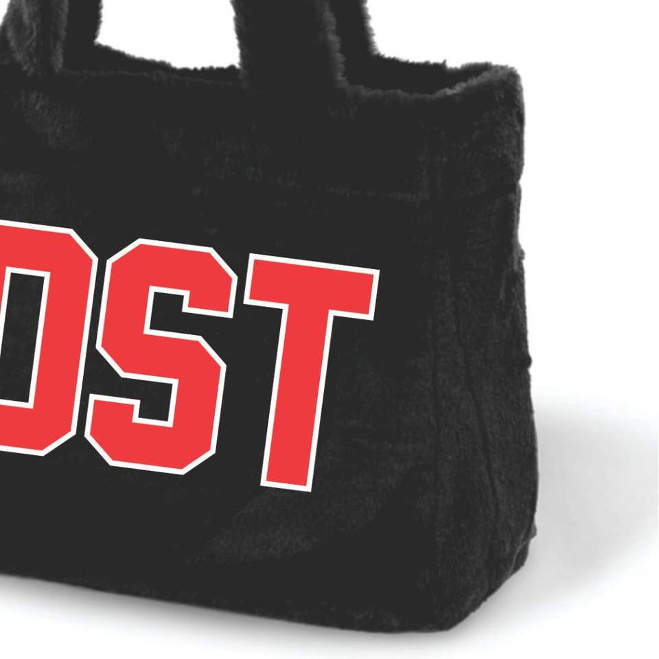 Delta Greek Sorority DST Fur Tote Bag Red with White Embroidered Letters Soft Plush Fabric Stylish Collegiate Sorority Gift