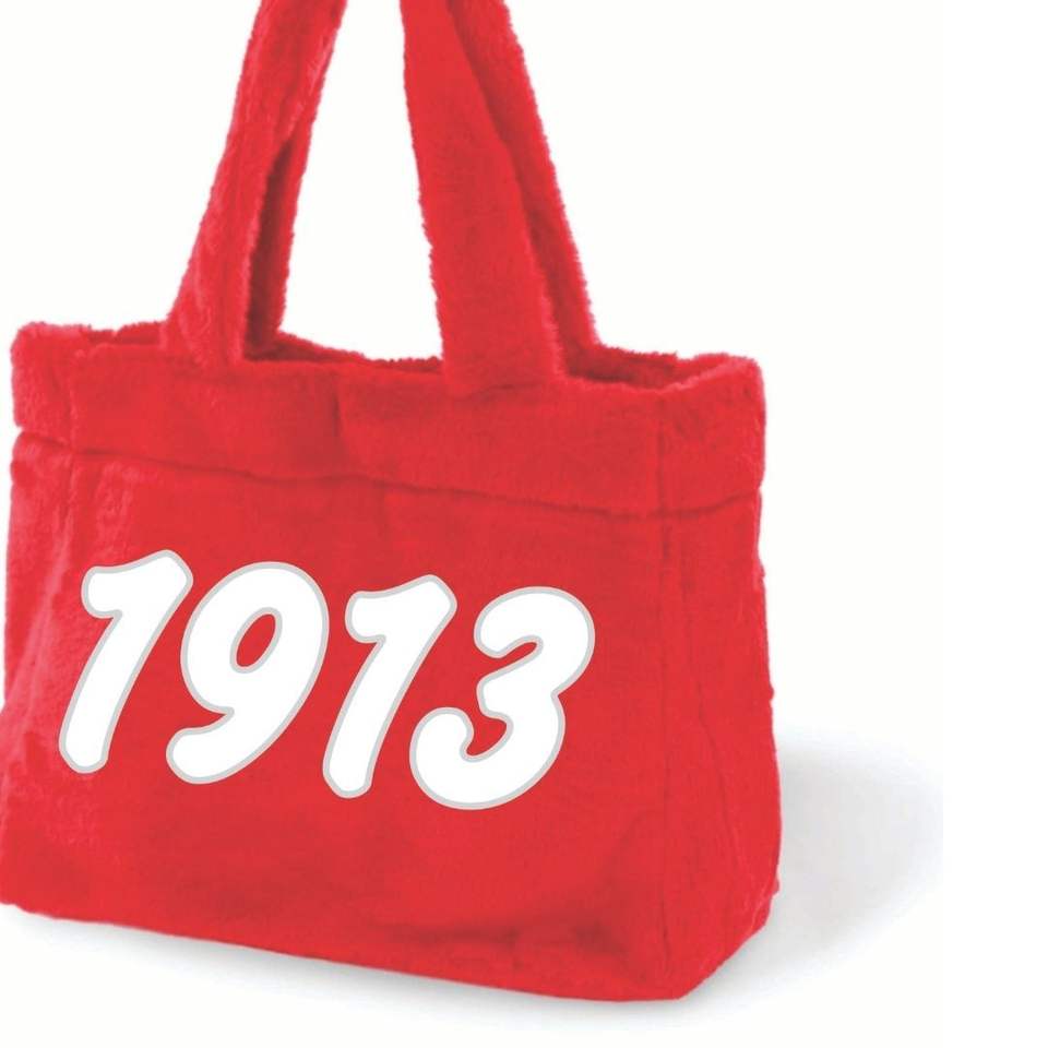 Delta Greek Sorority DST Fur Tote Bag Black with Red White Embroidered Letters 1913 Plush Handbag Greek Life Sorority Gift