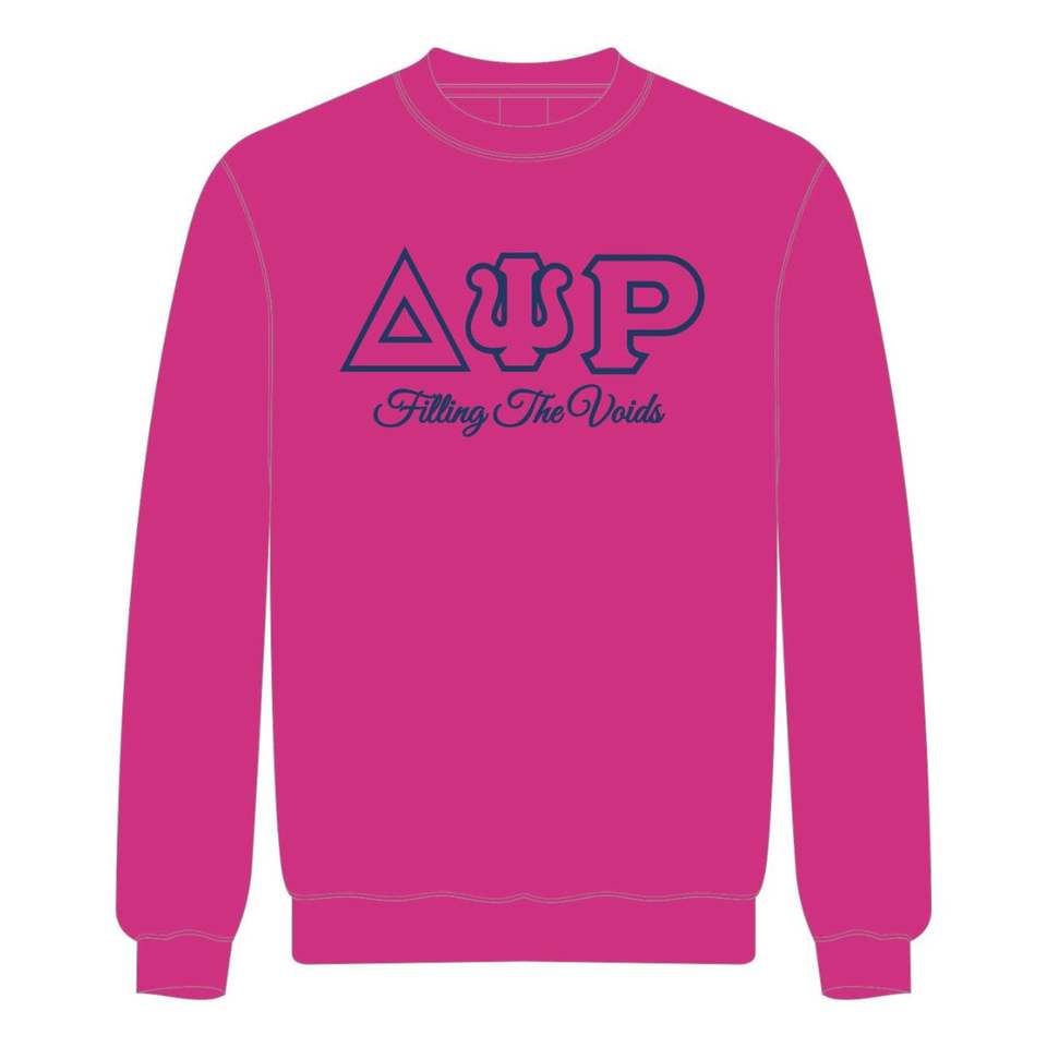 Delta Psi Rho Sorority Crewneck Sweatshirt Pink Cotton Poly Filling the Voids Greek Life Apparel Soft Comfortable Casual Wear