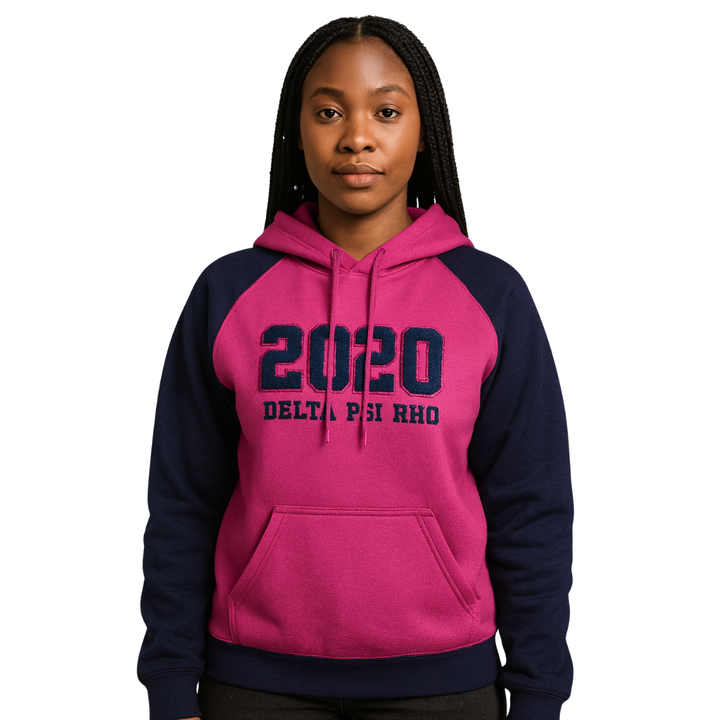 Delta Psi Rho Sorority Raglan Sleeve Pullover Hoodie Pink 80 Cotton 20 Poly Founding Year 2020 Greek Life Casual Wear Hoody