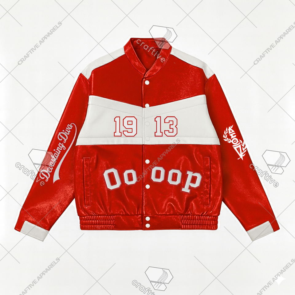 Delta Sigma Theta Racing Style PU Leather Jacket Customizable Sorority Stand Collar Jacket for Delta Racer Sorority Style