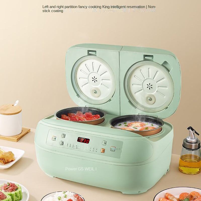 Deluxe 5.1-6L Dual-Pots Non-Stick Rice Cooker Mechanical Timer Control App-Controlled Car/RV Use Electric Manual Power Source