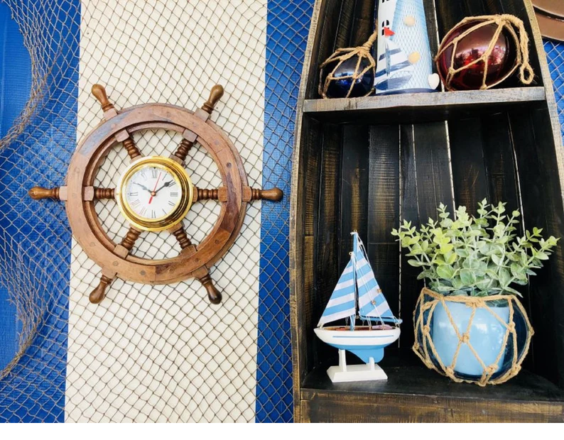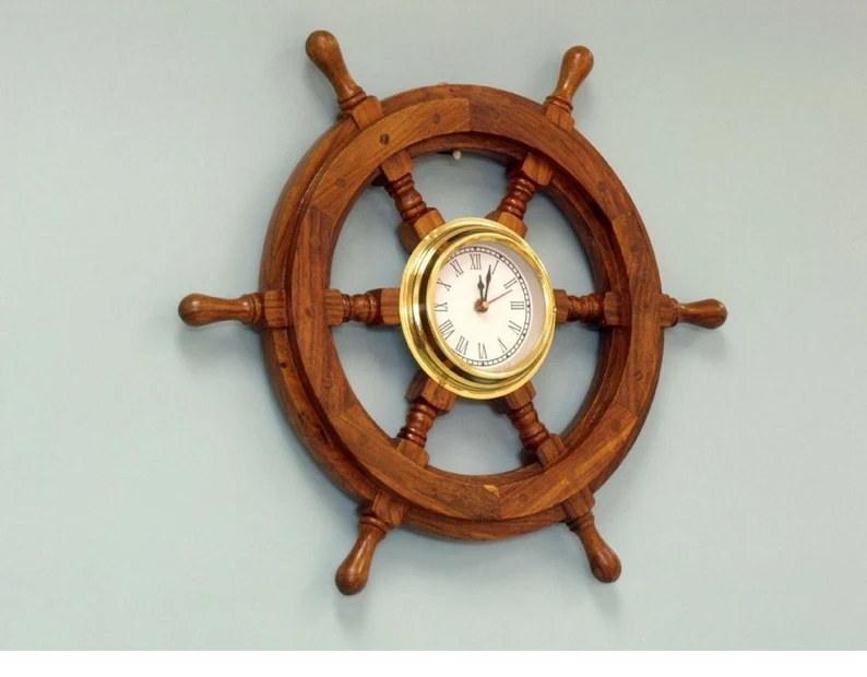 Deluxe Class Wood and Brass Ship Wheel Clock 18 Inch Clock.by calvin handicraft