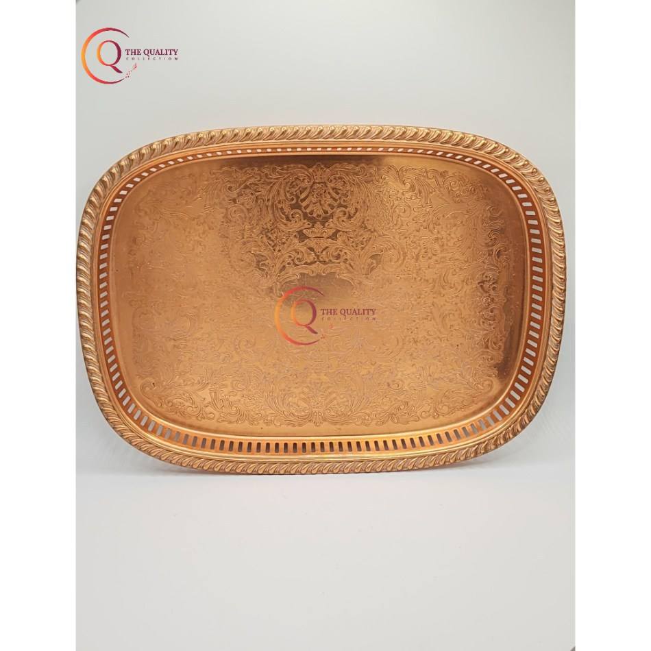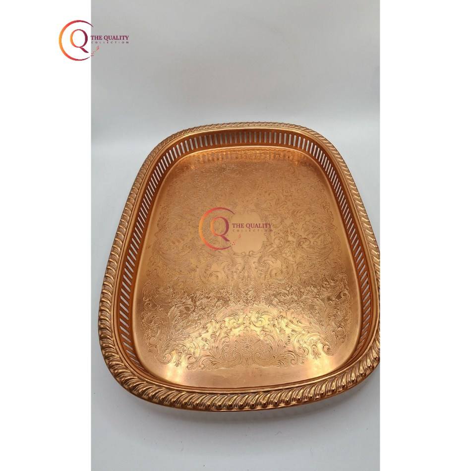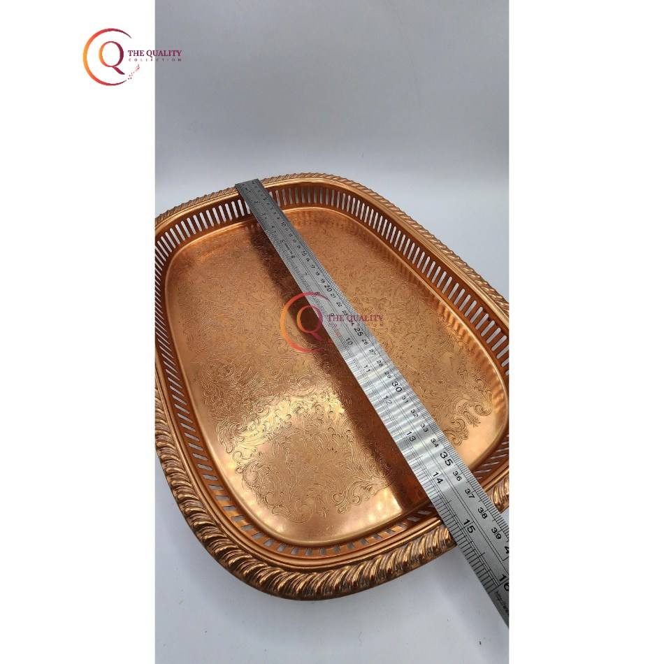 Deluxe Hammered Copper Plated Serving Dish & Plate Home Decorative Kitchen Table Top Safe Metal Serving Tray In Lowest Price