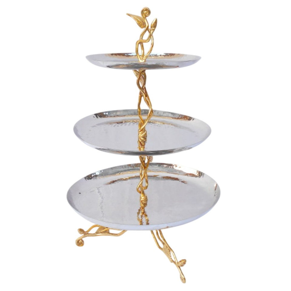 Deluxe Quality Gold Cast Metal 2 Tier Serving Tray With Bird And Branch Decorative Cake Stand For Home Dining And Events On Sale
