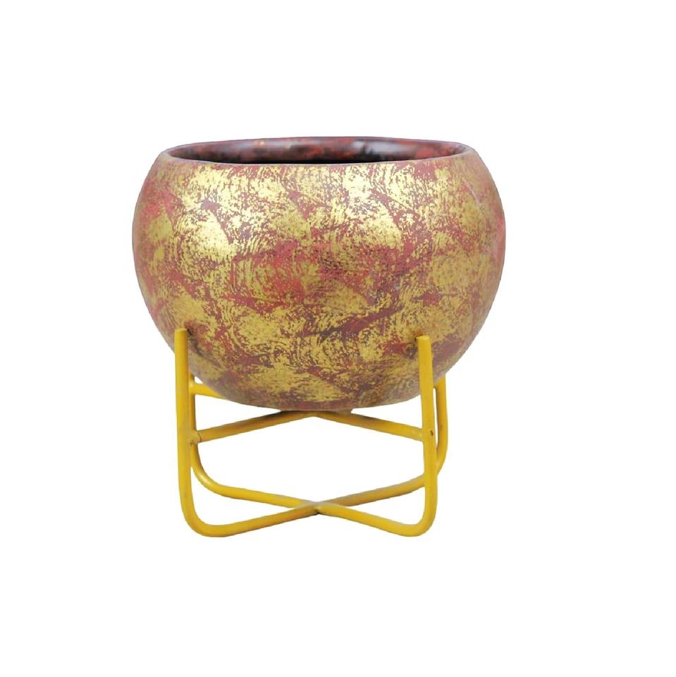 Deluxe Quality Metal Flower Planter Pots With Stand for Home Garden Decoration Red and Gold Colo Planter Pots in Lowest Price