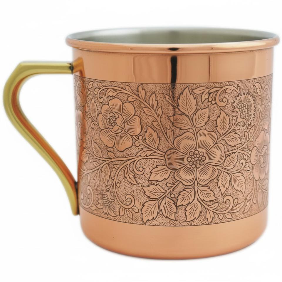 Deluxe Quality Pure Solid Copper Mug Handcrafted Floral Patten Design With Polished Brass Handle Premium Barware Drinkware Beer