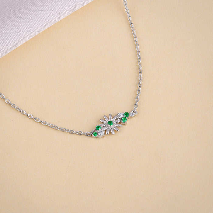 Deluxe Silver Flower Necklace with Classic Look and Silver Plated Designer Chain for Women