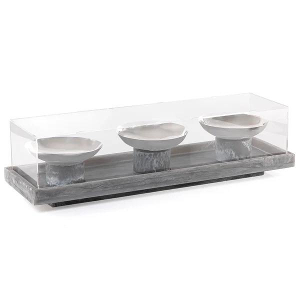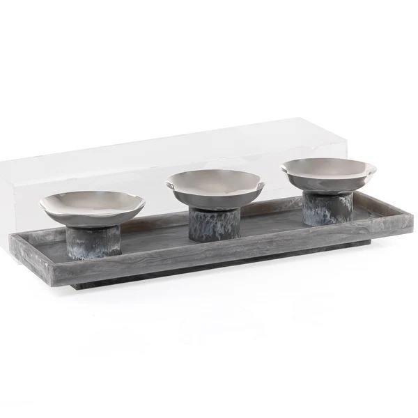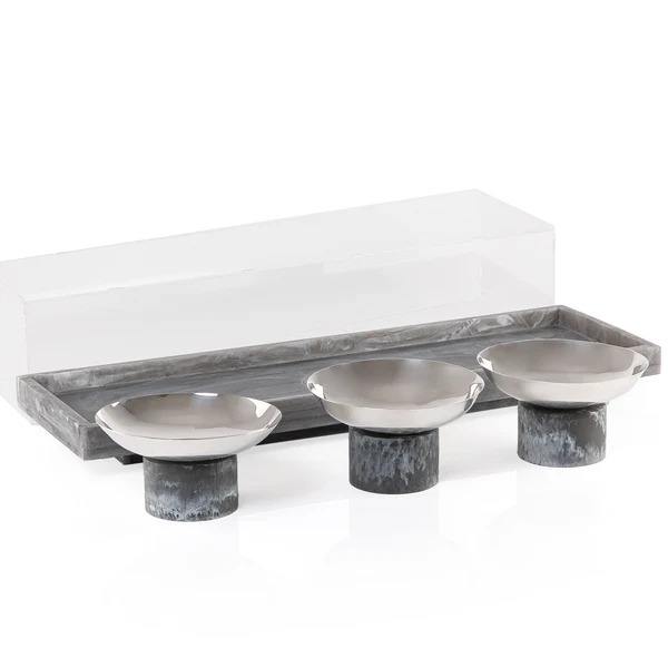 Deluxe White Resin Epoxy 3-Piece Serving Bowl Tray Set Multi-Functional Dessert Gift Box for Diwali Eid Ramadan Festive