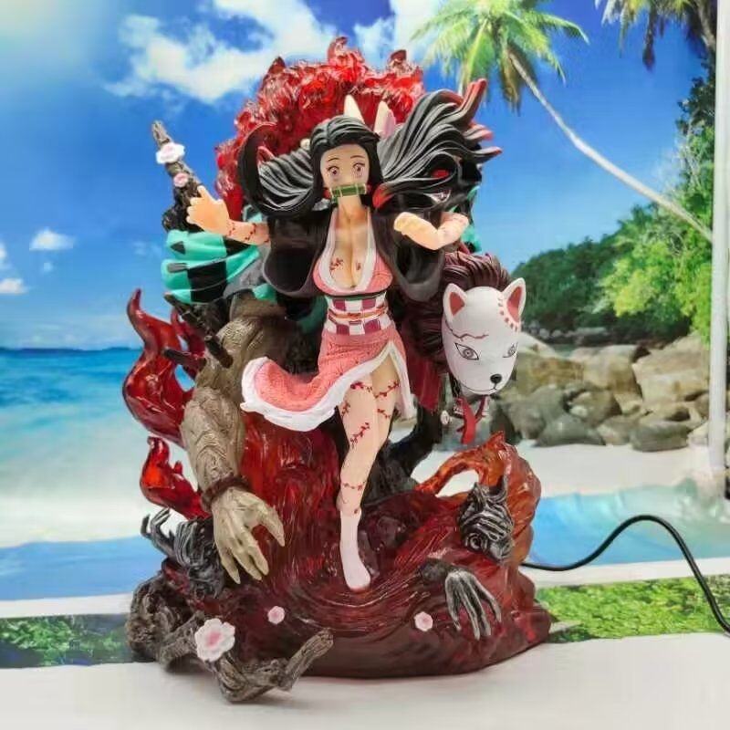 Demon Slayer Kimetsu no Yaiba ODM Action Figures Set Nezuko Double-Headed Sculpture with Glowing Statue Made of Plastic