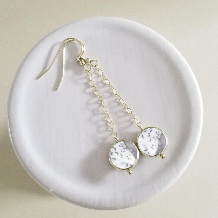 Dendritic Agate Coin Shape Dangle Earrings Natural Patterned Gemstone Silver Plated Handmade Jewelry for Women