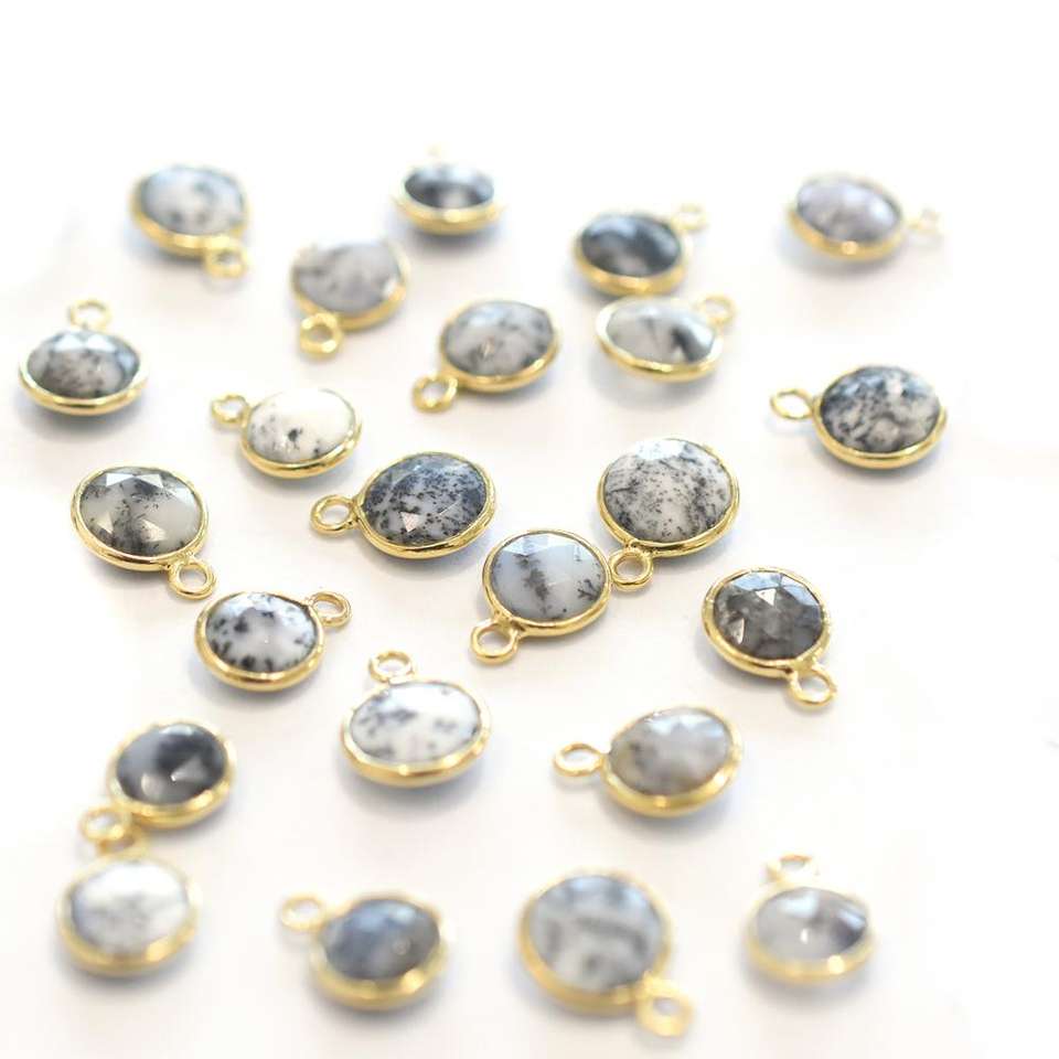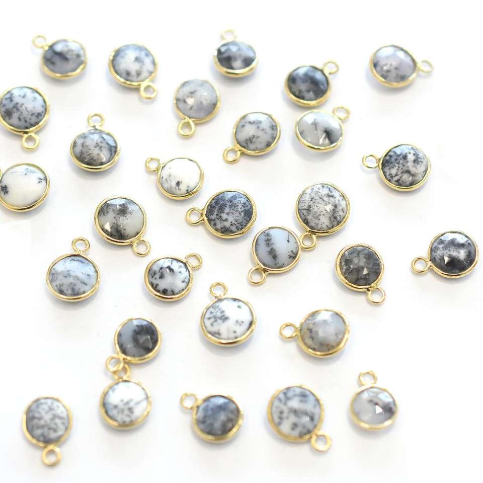 Product Name:Dendritic Opal Round Shape Silver Bezel Gold Plated Pendant