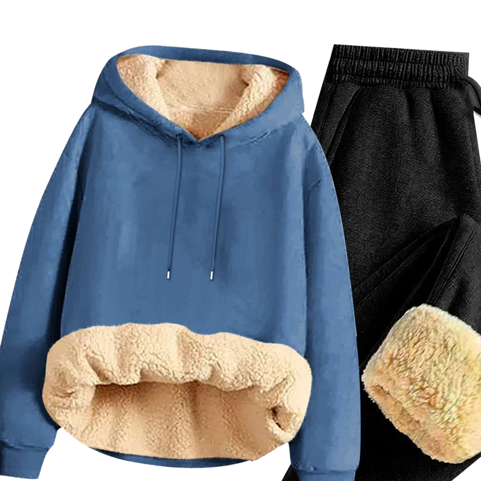Denim Blue Fleece Lined Hoodie Tracksuit With Warm Jogger Pants For Men Women Winter Heavyweight Casual Sportswear Wholesale OEM