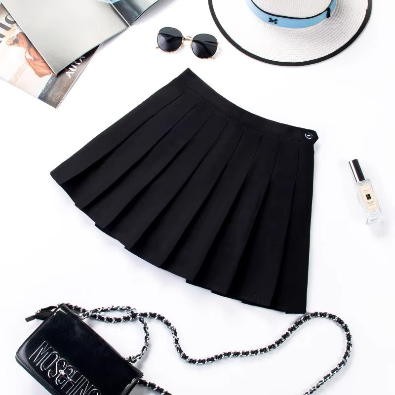 Short Skirt New Korean Women Zipper Natural Waist School Girl Pleated Solid Sexy Autumn Preppy Style