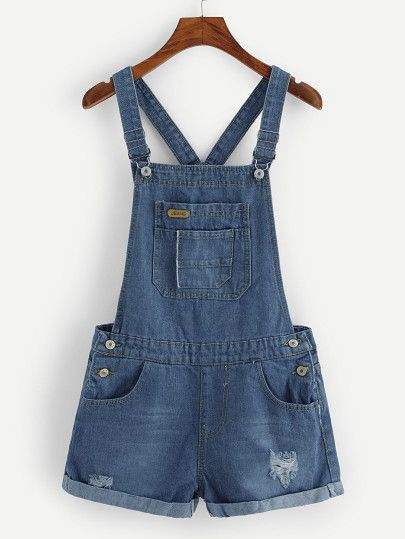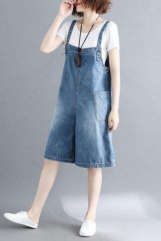 Denim High Quality Short Dungaree for Women Light Wash Distressed Vintage Effortless Style Bib Overall Button Printed Trendy