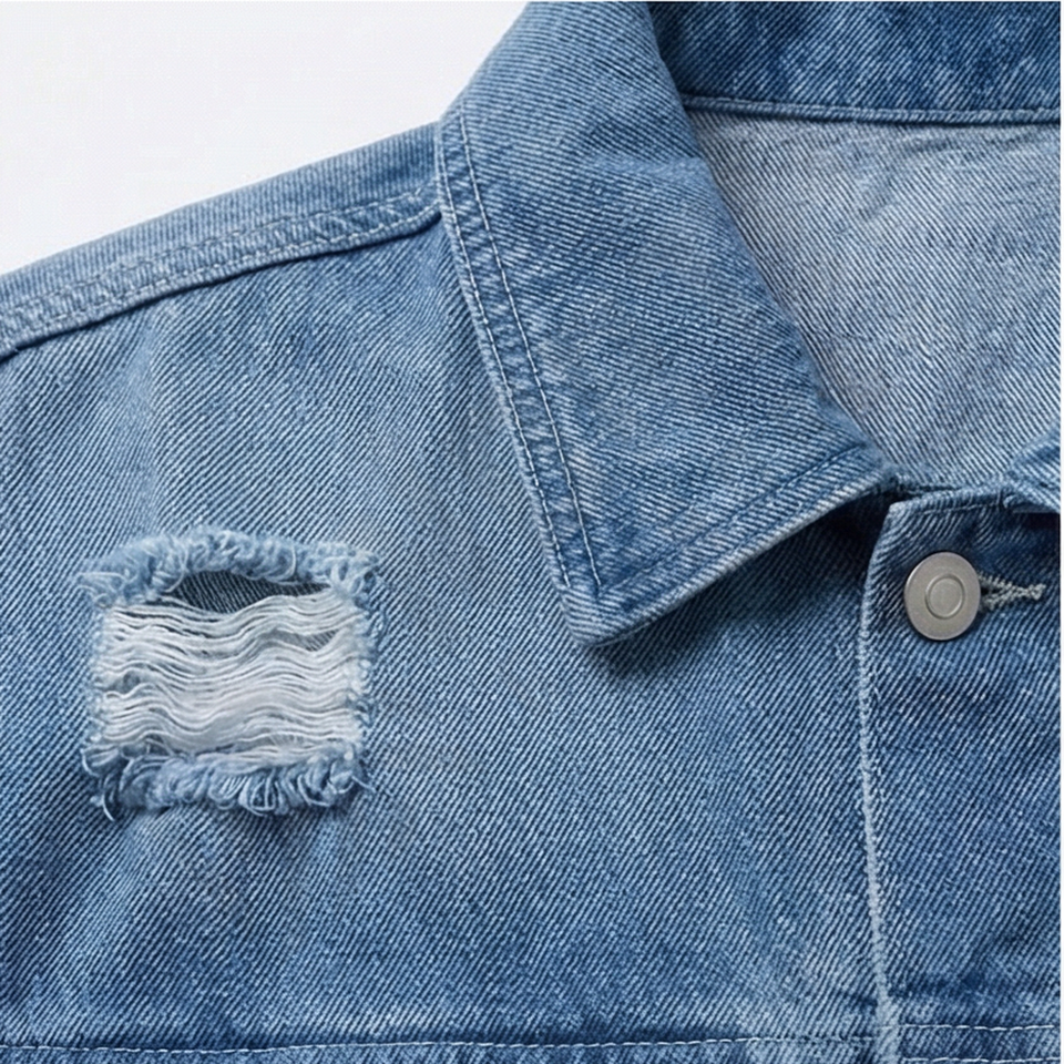 Denim Jacket For Men Slim Fit Ripped Biker Style Vintage Blue Custom Long Sleeve Classic Jeans Outerwear Jean Jacket Men