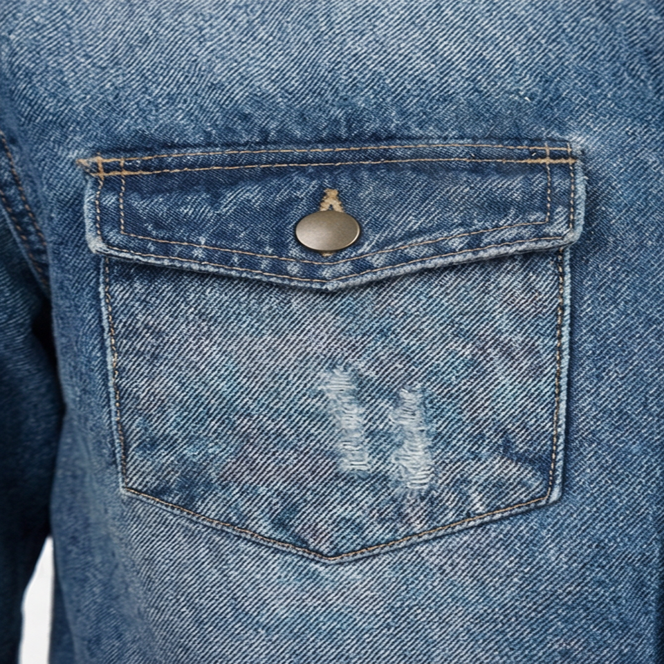 Denim Jacket For Men Slim Fit Ripped Biker Style Vintage Blue Custom Long Sleeve Classic Jeans Outerwear Jean Jacket Men
