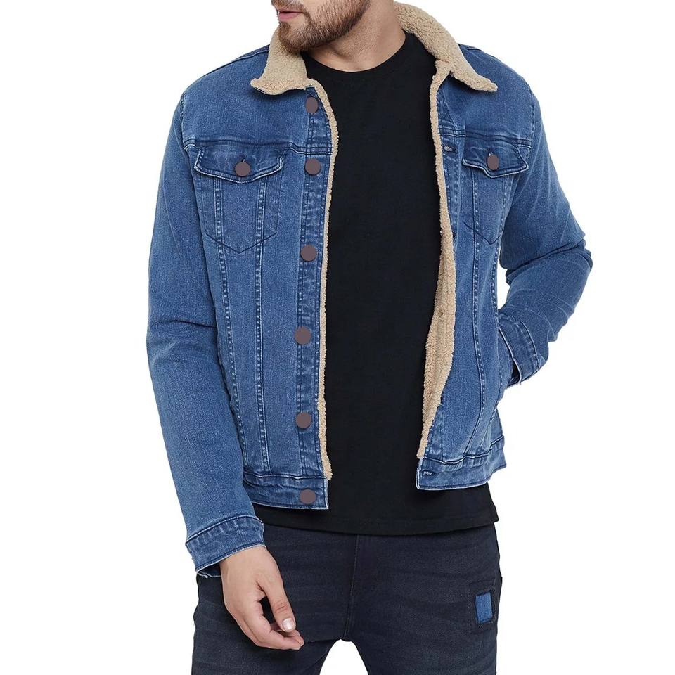 Denim Jackets With Fur Lining Breathable Sherpa Fleece Inside Lining Denim Jackets Winter Custom Design Denim Rain Jacket Boys