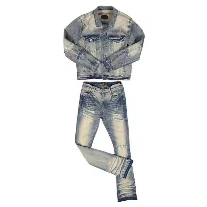 Denim Jeans Jacket Sets Customized Man Clothing Street Wear High Quality Denim Pants Sets for Men Classic & Cool Jean Combo