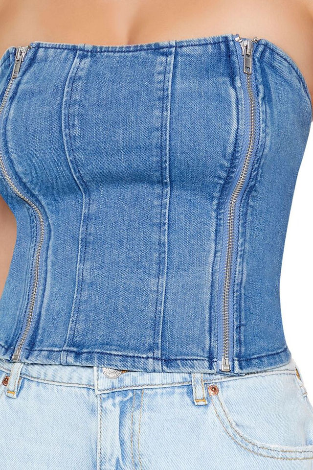Denim Lace-Up Tube Top 2025 Customized Design Breathable Women Plus Sized Women Jeans Tube Top women's shirt Wholesale