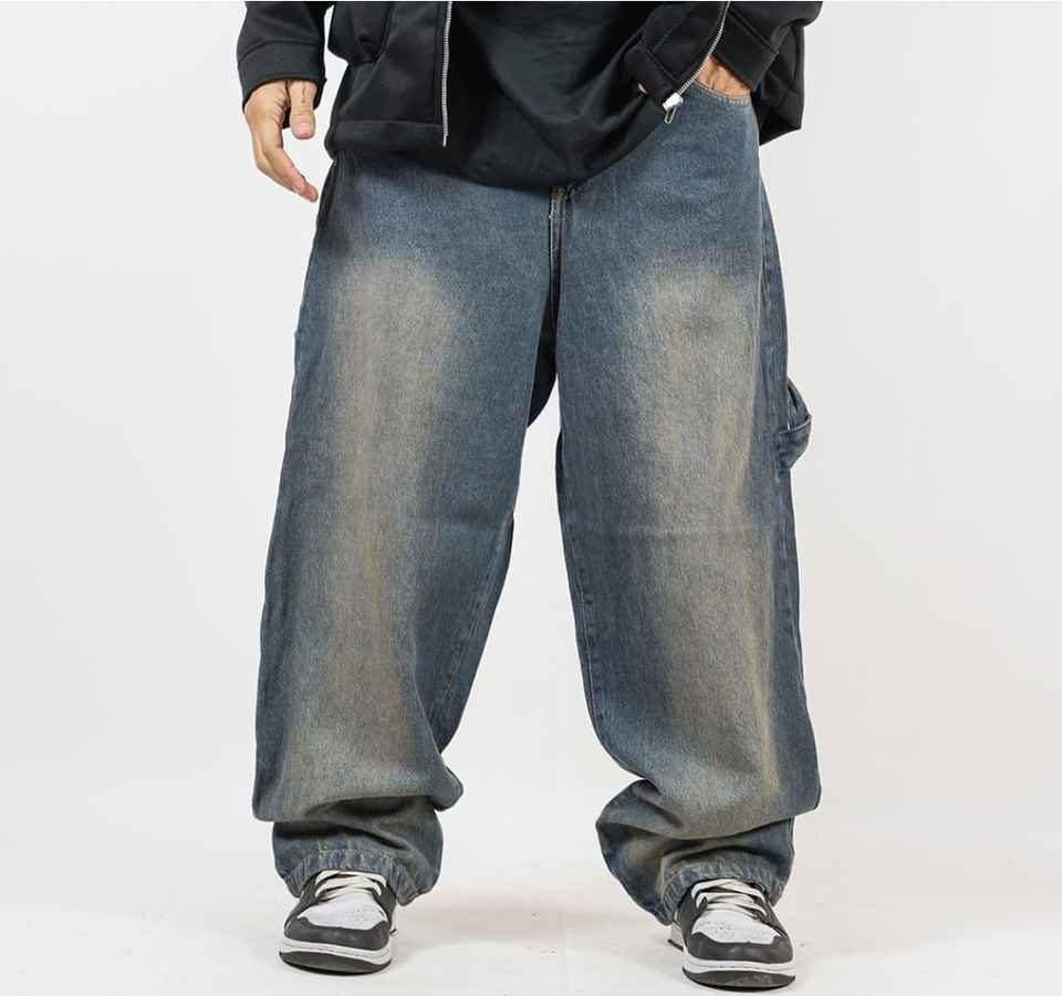 Denim Manufacturer Custom Unisex Men's Winter Vintage Wash Breathable Eco-Friendly Oversized Cotton Straight Wide Leg Baggy