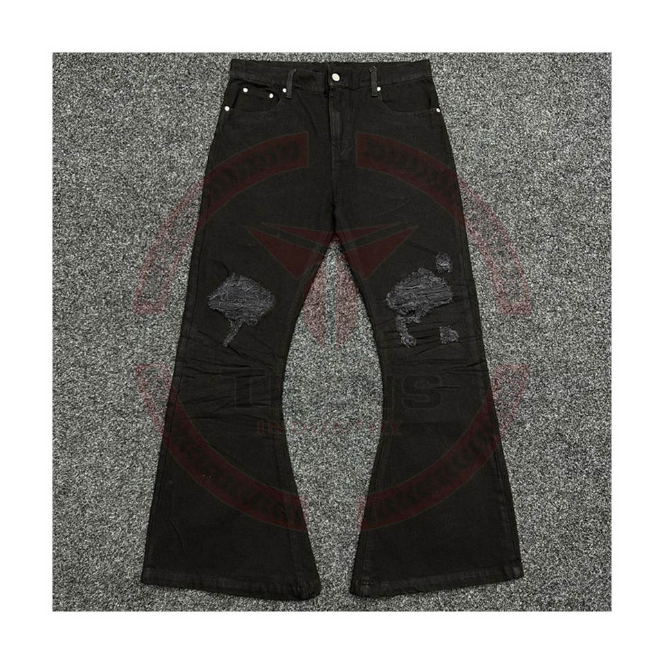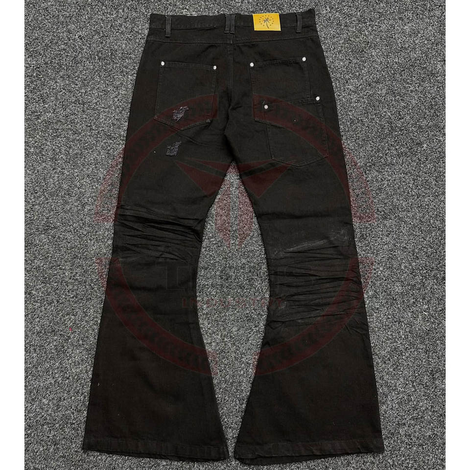 Denim Manufacturer Custom Winter Solid Breathable Vintage Wash Cotton Straight Flared Distressed Jeans for Men