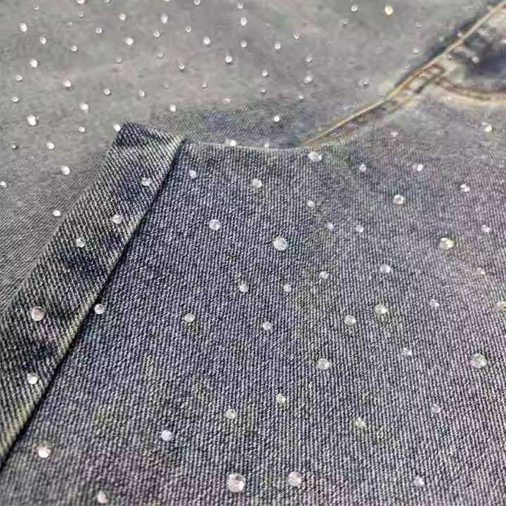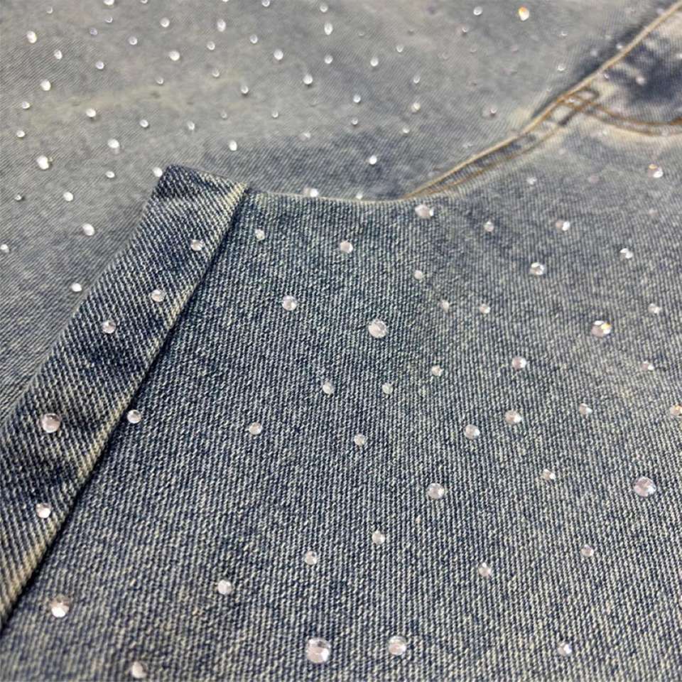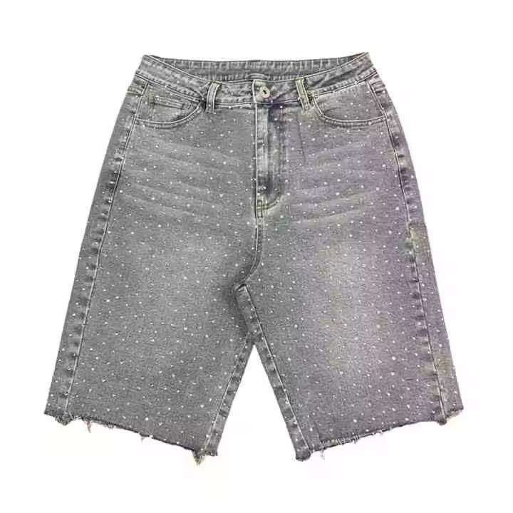 Denim Manufacturer Streetwear Custom Vintage Wash Jorts Men Jeans Shorts with Rhinestones Denim Shorts